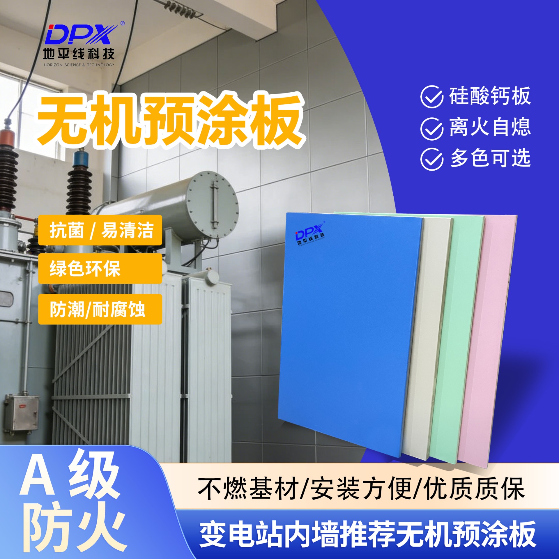 无机预涂板是以硅酸钙板、纤维水泥板等无机基材为主体,通过工厂标准化预涂氟碳、UV环保涂层制成的成品装饰板材,无需现场二次涂装加工,自带多重适配变电站场景的优质性能,解决传统建材短板。在安全性能上,板材为