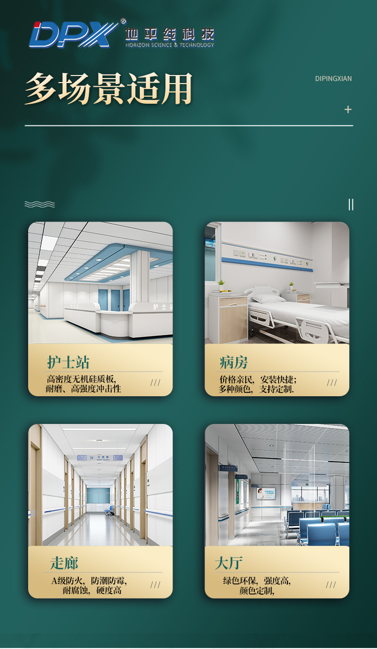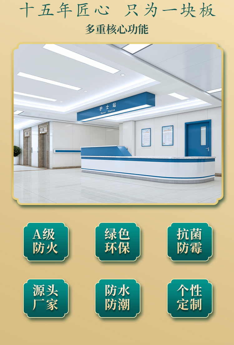采用大尺寸模块化板材(常规尺寸 1220×2440mm,大可定制 3000×1220mm),相比传统瓷砖(300×600mm)或彩钢板(1000×2000mm),可减少接缝数量,降低缝隙积尘的概率。