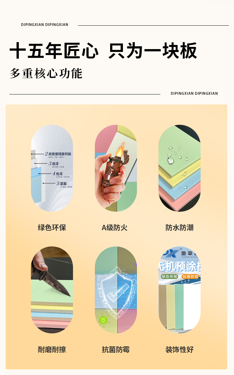 校园是人员密集场所,安全不容妥协。传统墙面材料在防火与强度上常有短板。无机预涂板采用无机材料为基材,通常达到A级防火标准。这意味着在突发状况下,板材本身不燃、不产毒烟,能有效阻断火势蔓延。在走廊、实验室、图书馆等关键区域,它就是一道隐形的“防火墙”。同时,针对学生活泼好动的特点,该板材表面硬度高,具备良好的抗冲击性。无论是课间打闹的意外撞击,还是桌椅书包的剐蹭,都不易留下痕迹,有效规避了传统墙面起皮、脱落带来的安全隐患,减少意外伤害风险。