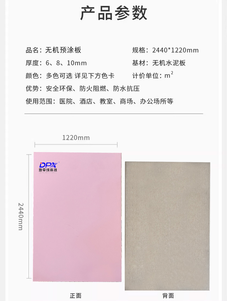 无机预涂板破解了这一痛点。其以无石棉硅酸钙板、高密度纤维水泥板等无机矿物为基材,天生具备防火基因,经检测机构认证,燃烧性能达到A 级不燃标准